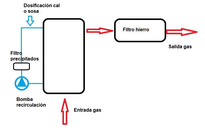 filtros de lana de hierro, lavado con sosa, precipitación con SO2,